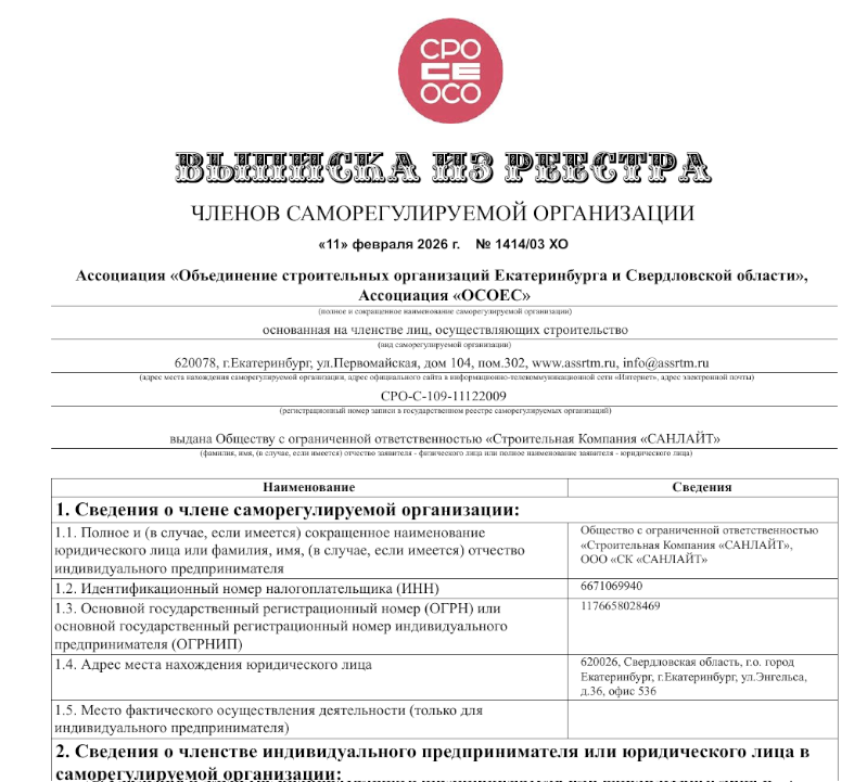 Слаженный коллектив профессионалов «СК САНЛАЙТ» на протяжении 23 лет успешно работает на строительном рынке Екатеринбурга, Москвы и других городов России c 2002 года.